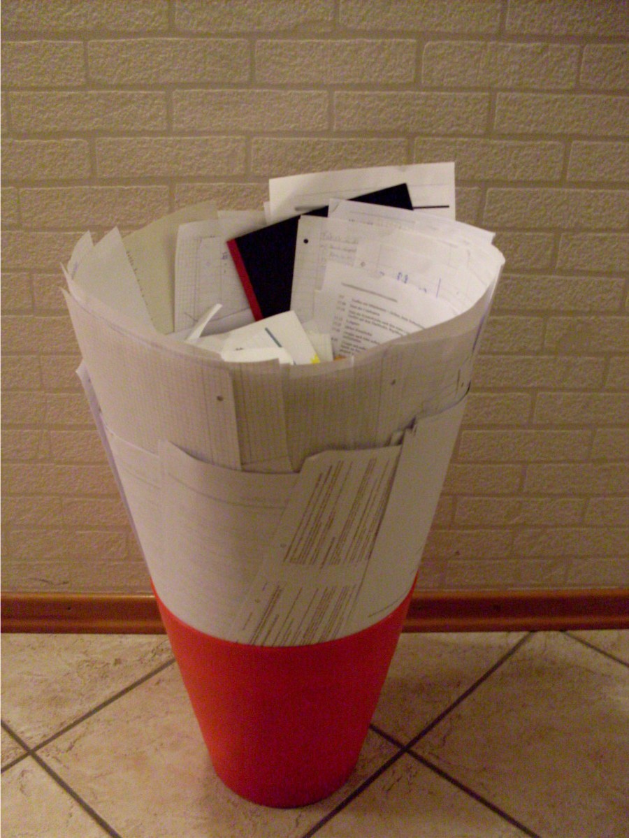 Ein grosszügig gelochter Mülleimer wäre noch toll. Dann kann man sich jeden Monat treffen und die vergangenen Hausaufgaben auf herz- und körpererwärmende Weise in Flammen aufgehen lassen…
